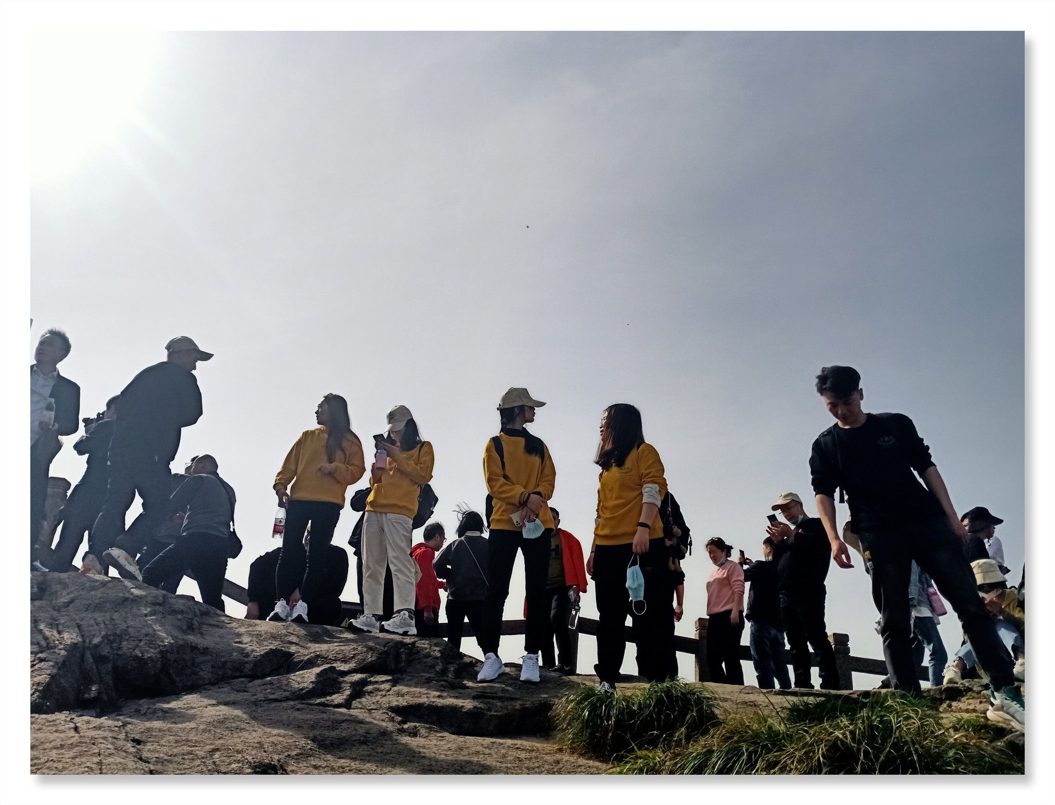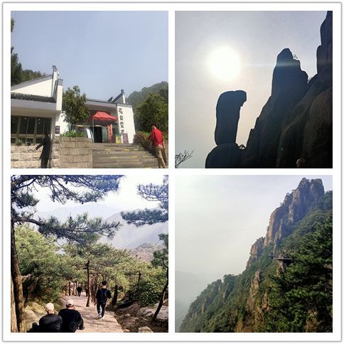 行程第一天,大家在導(dǎo)游的帶領(lǐng)下游覽了花臺景區(qū)。景區(qū)內(nèi)風(fēng)光壯美,景色綺麗,以奇峰怪石、云海霧凇、花的海洋而著稱,素有“靈山九華,美在花臺”的說法。景區(qū)內(nèi)有我國品種集中的稀有高山杜鵑花,紅、黃、白、紫等爭相綻放,爭奇斗艷,鑲嵌在山野絕壁中,宛若“天街花市”,儼然一副華美的山水畫。然而山上這個時節(jié)的杜鵑花仍是花骨朵兒,大家并未得觀百花爭艷的絕美景色。不過山上奇特的地質(zhì)地貌,神奇地構(gòu)成了九華山著名的“天然睡佛”奇觀。大家圍繞睡佛時而奮力攀登、時而漫步臨山棧道。登臨花臺頂,一覽九華全景,更可以“親近睡佛,聆聽佛音”,與神奇的“睡佛”零距離接觸,得大佛護(hù)持、倍感靈氣。